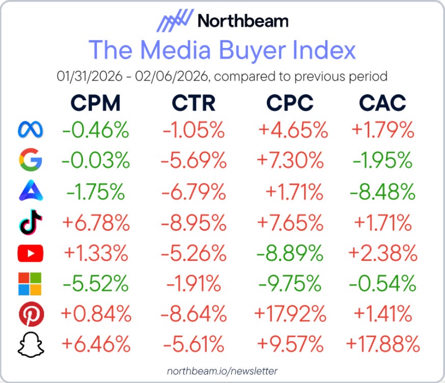 This week’s media buyer landscape felt more expensive and less predictable. Traffic costs moved higher in many channels, while conversion efficiency slipped in several growth pockets. Teams that stay disciplined on testing and budget pacing will protect margin.