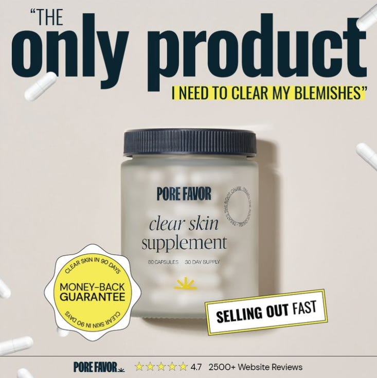 This ad collapses the entire skincare routine into a single-point dependency. “The only product I need” removes comparison entirely, making alternatives irrelevant before they’re even considered.