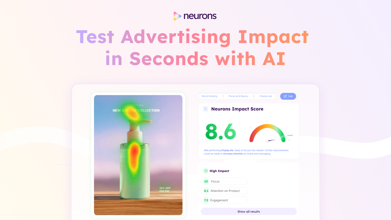 Neurons measure attention, recall, emotions, and more. Then it distills all the neuroscience metrics into a single 1-10 number so you can make data-driven decisions faster.