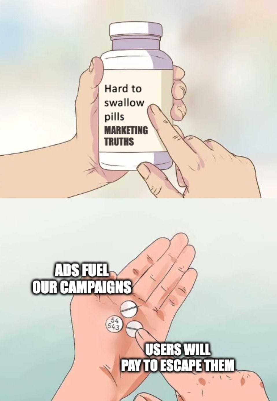 Balancing the marketing equation: Ads we love to create vs. the ad-free experience users crave. 🤔💊