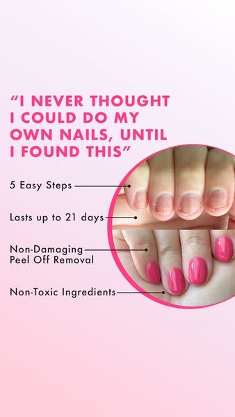1. “I Never Thought…” Hook Creates an Empathy Gap - The opening quote uses self-doubt to trigger relatability, especially for women who’ve failed at DIY nails. It sets up a before/after transformation, both visually and emotionally, making the viewer feel like they’re missing out on something empowering.