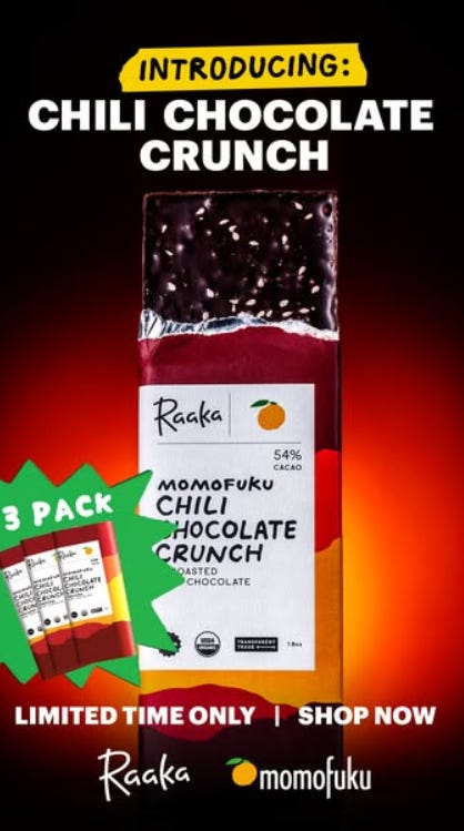 2. Two names, less doubt - Seeing Raaka next to Momofuku makes this feel like a safe experiment. Even if youâre unsure about spicy chocolate, you trust the people behind it enough to give it a shot.