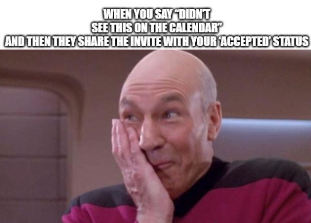 Shoutout to past me for accepting that invite and ruining present me’s excuse.