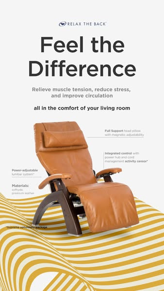 1. Headline that promises transformation - âFeel the Differenceâ is short, sensory, and emotionally charged; it sells the experience, not just the chair. It triggers curiosity and positions the product as life-enhancing rather than functional. Lead with an outcome-oriented headline that makes the benefit tangible and immediate.