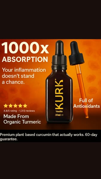 KURK positions itself as a turbocharged turmeric supplement by leading with absorption, not just ingredients. It blends aggressive performance claims with soft trust signals like reviews, organics, and a money-back guarantee.