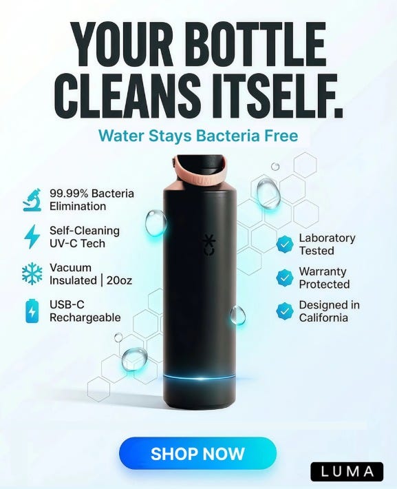 The Headline Is a Sci-Fi Promise Stated as a Boring Fact - âYour Bottle Cleans Itself.â No exclamation mark. No âintroducing.â Just a flat declarative that sounds so matter-of-fact it almost feels like you shouldâve known already.