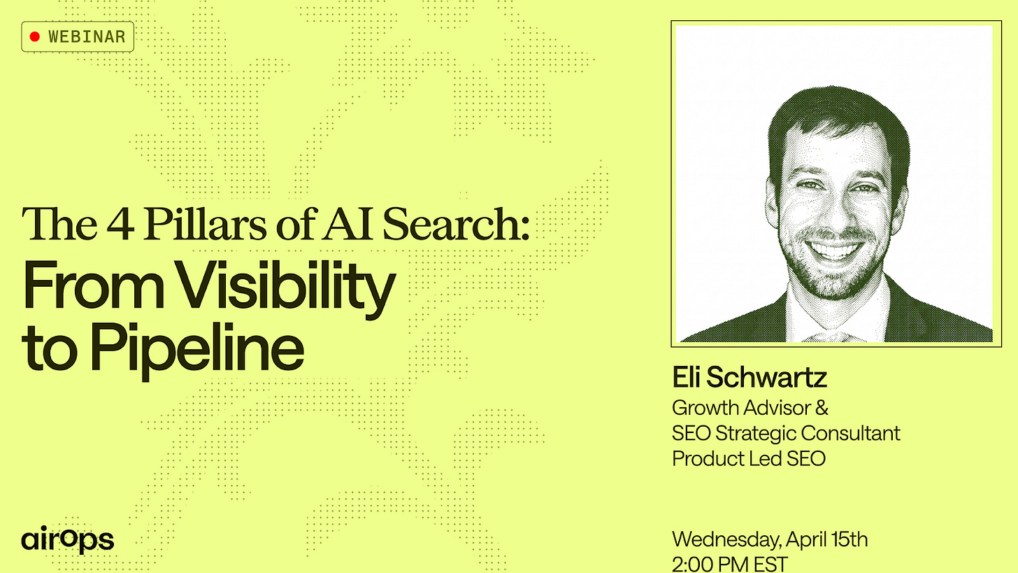 Join AirOps on April 15th at 2 PM EST for a live session with Eli Schwartz, Growth Advisor and Author of Product-Led SEO.