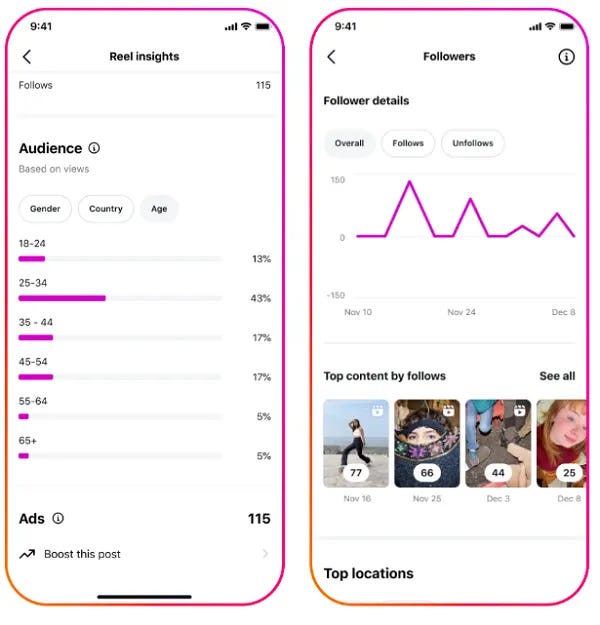 4. Metrics shift to views âInstagram is replacing âAccounts Reachedâ with âViewsâ to track actual watchers. All content types will use this metric, aligning analytics with true engagement.