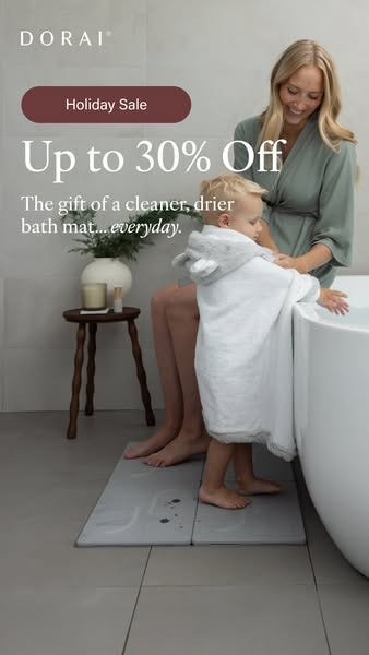 1. Clean as Care - The ad frames cleanliness as an act of love, not hygiene. A mother drying her child turns a bath mat into a caregiving tool, making the product feel emotionally protective, not functionally optional.
