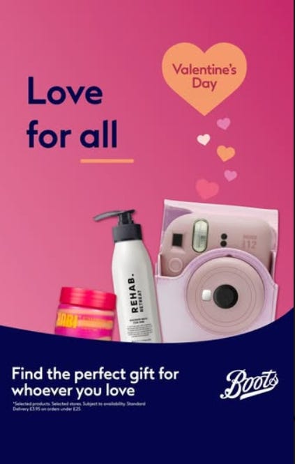 This is a Stress-Relief Ad: Valentine’s gifting is pressure. This ad lowers it by saying “love for all,” which quietly removes the fear of picking the wrong thing for the wrong person.
