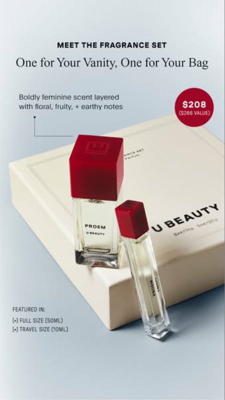 1. Premium Framing Through Pair Logic - âOne for your vanity, one for your bagâ makes the set feel intentional, not excessive, it subtly justifies a higher ticket by tying luxury to practicality. Frame bundles as lifestyle enablers, not add-ons, utility disguised as elegance elevates perceived value.