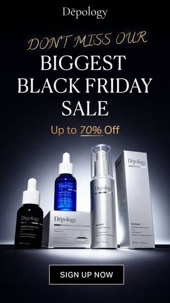 1. Luxury tension through lighting - The backlit glow transforms skincare bottles into cinematic objects, a subconscious cue borrowed from luxury retail lighting. It creates scarcity tension: if the light feels exclusive, the deal must be fleeting. The dramatized shadows trigger a reward-seeking impulse under pressure.