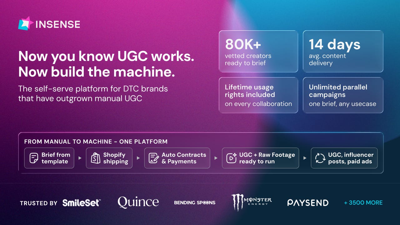 Insense is the self-serve platform for DTC brands that have outgrown manual UGC.