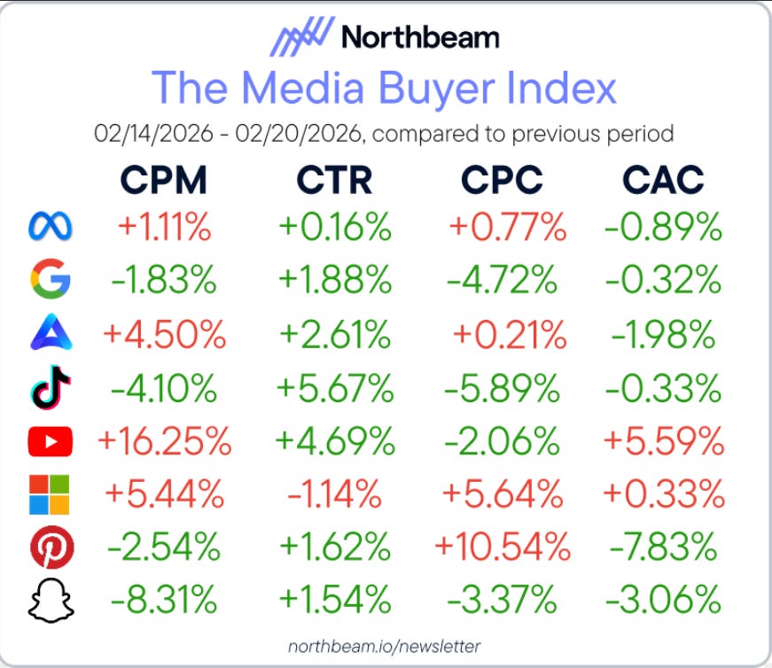 This week’s media buyer environment felt steadier and more constructive. Traffic costs were mixed, but conversion rates improved across more platforms. Growth teams finally have clearer signals on where efficient scale is possible.