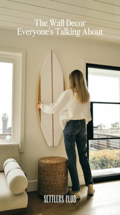 2) The surfboard shape is a portable identity symbol - A surfboard on a wall is instantly legible as “coastal, relaxed, design-aware,” even if you never surf. It functions like a badge, not an art piece, compressing lifestyle signaling into one silhouette.