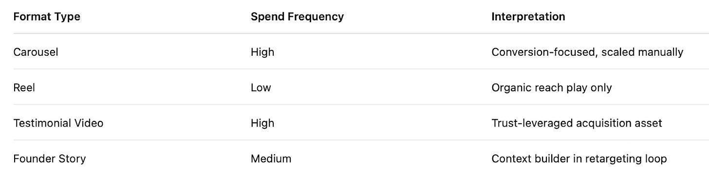 👉 If they’re spending behind a carousel, not a reel, it’s not a mistake. It’s a format vote.