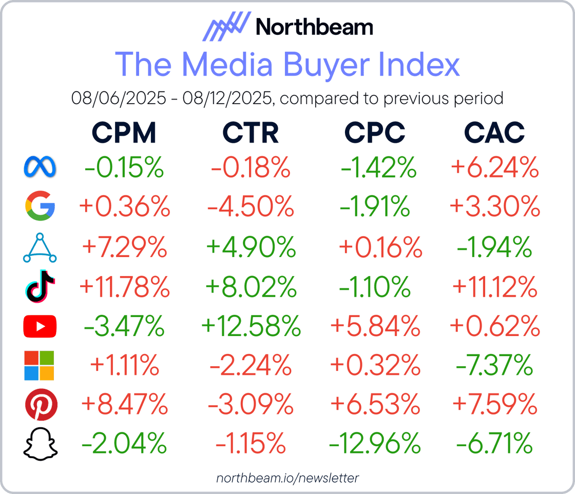 📊 Northbeam Media Buyer Index: CPC, CAC, and ROAS Insights (Aug 6–12)