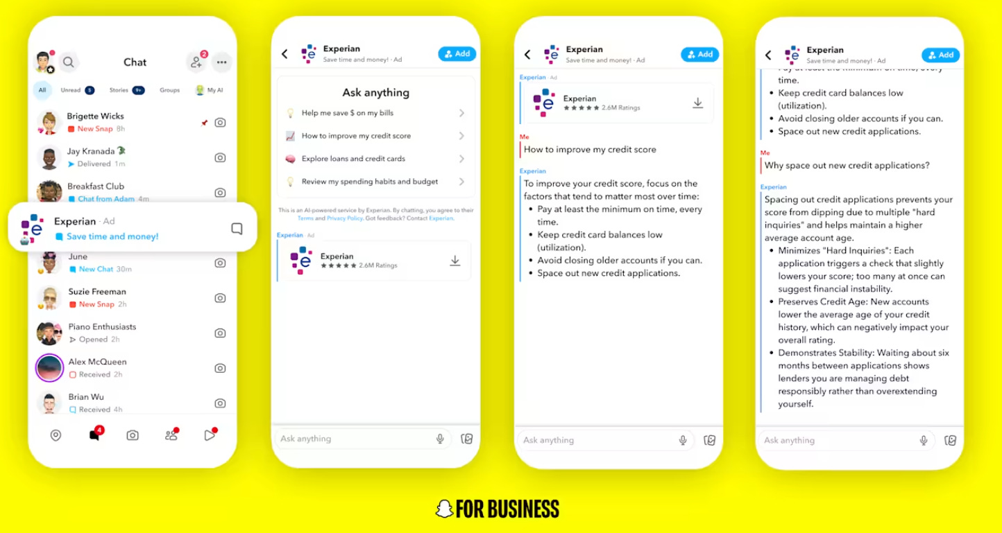 Snapchat Puts AI Chatbots in DMs - Snapchat launched sponsored AI chatbots that appear directly in usersâ Snap inboxes. Users can talk to branded bots using suggested prompts. Sponsored Snaps already drive 22% more conversions than other formats on the platform.