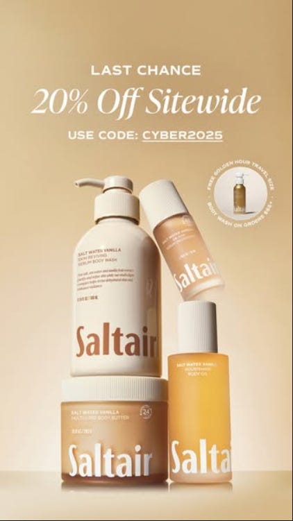 This ad works because it doesn’t scream “SALE” it frames the discount inside a world of sensory warmth, ritual, and composure. It sells self-care elevated by scarcity, making 20% off feel like an invitation into a calmer, more beautiful version of daily life.