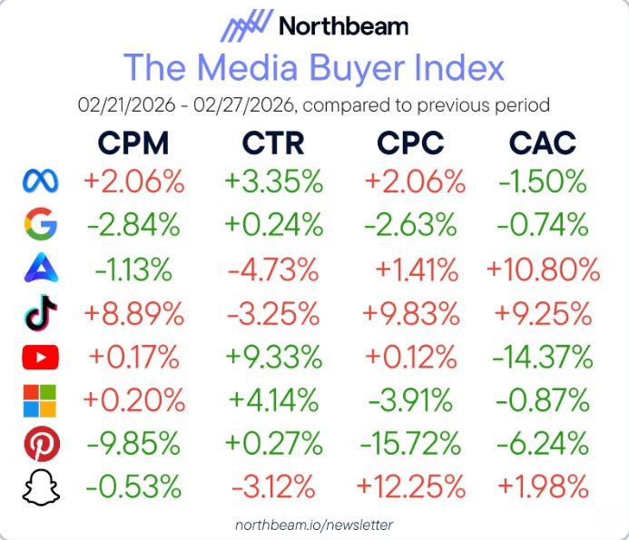 Cost and conversion signals moved in opposite directions across major platforms last week, creating clear winners and pressure points for teams managing active budgets heading into March.
