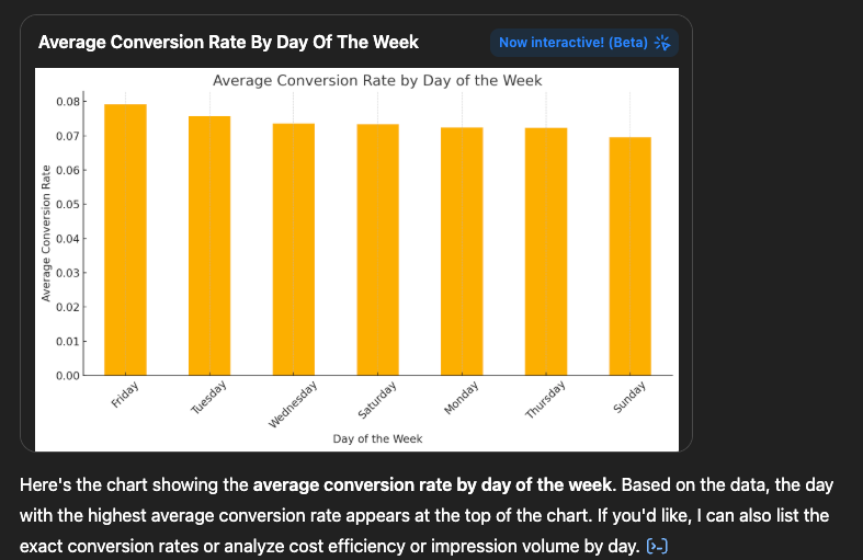 The real power of ChatGPT isn’t just in answering your questions, it’s in surfacing the ones you didn’t know to ask. A simple prompt like “What else should I look at in this data?” can trigger new angles, missed patterns, or deeper layers of insight. It’s not just a faster analyst, it’s a smarter starting point for strategic thinking.