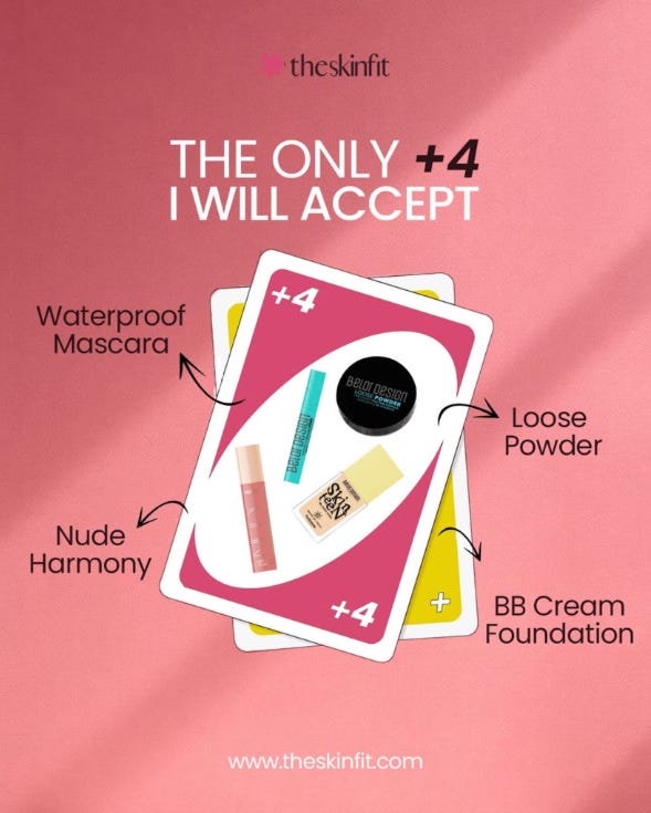 This ad hijacks game logic, not beauty logic. The UNO-style “+4” reframes the bundle as a power move, not a purchase. You’re not buying products, you’re gaining an advantage, which makes the decision feel playful and rewarding instead of transactional.
