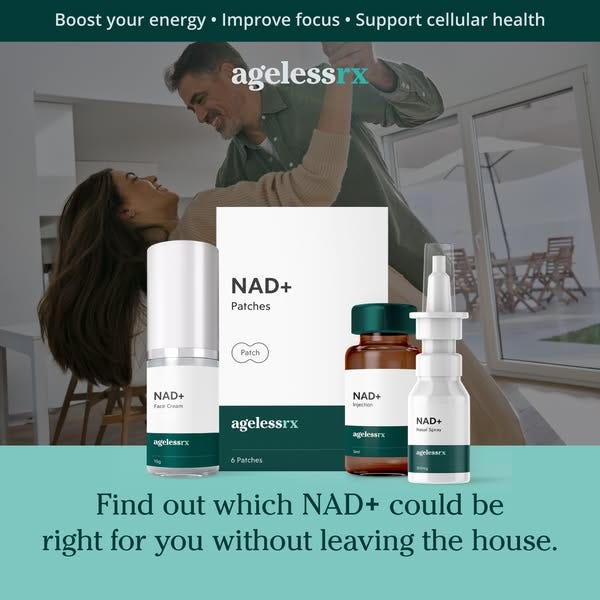 2. Visual trust through a variety of products - Showing multiple NAD+ formats (patches, face cream, injections, nasal spray) signals credibility and choice without overwhelming the viewer. The move here is to use product variety as a trust-builder, not just a sales tactic, since range implies legitimacy and research depth.