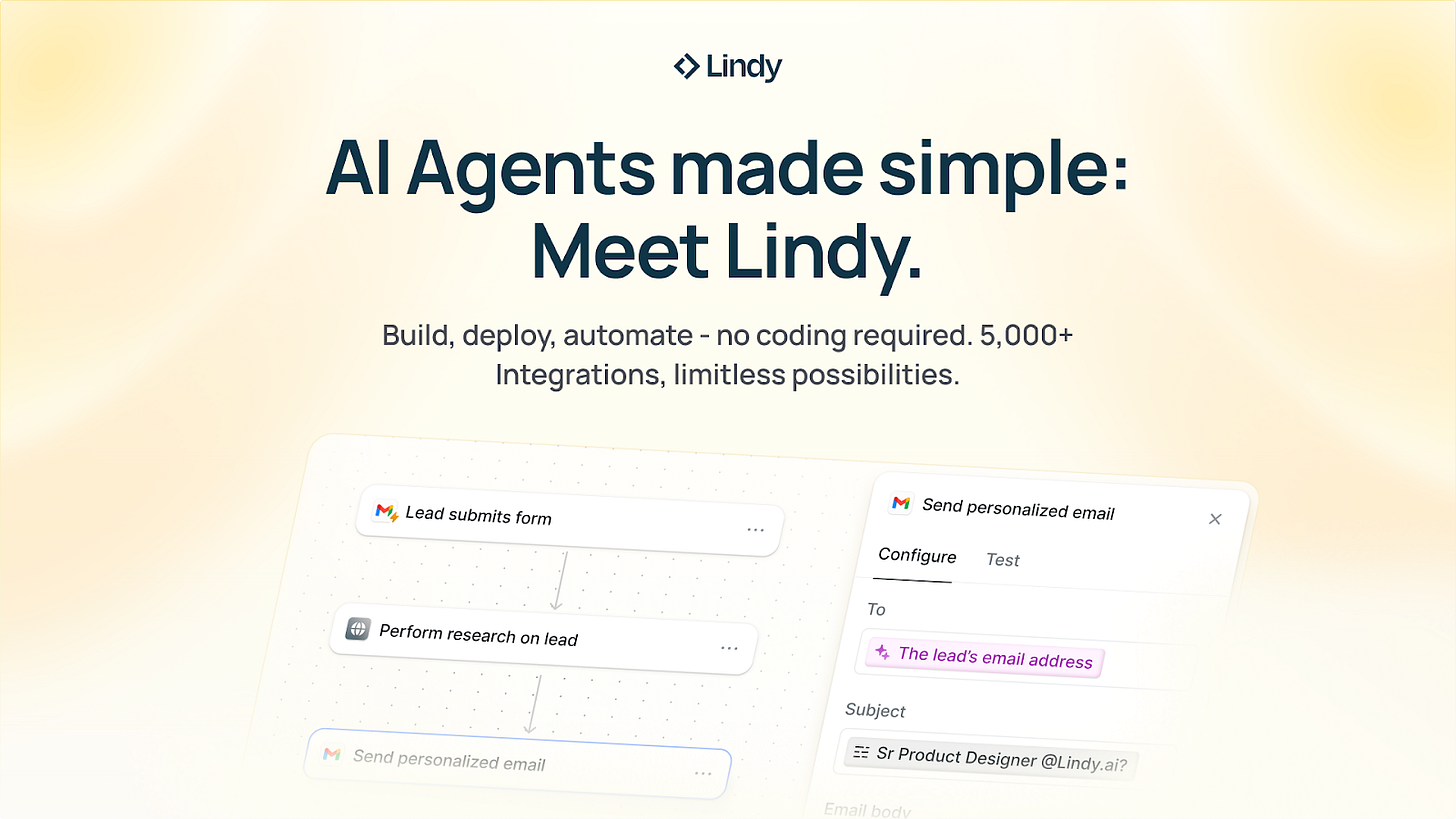 From booking platforms to lead nurturing, Lindy turns hours of manual work into minutes of automation. Your next hire wonât be human; it will be AI.