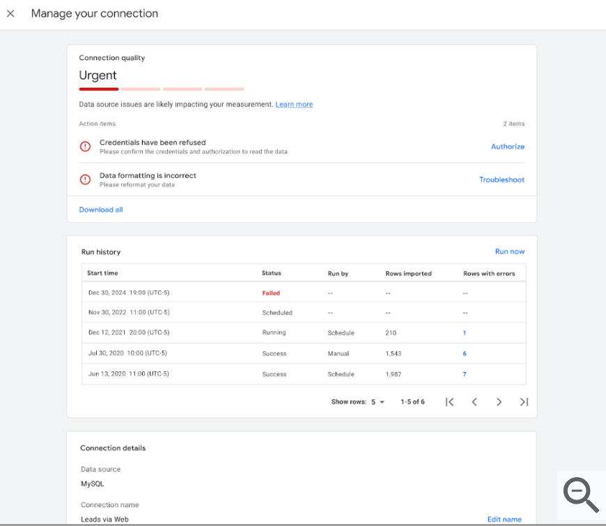 2) Know what “urgent” really means - An urgent status means data has stopped flowing, often for over 48 hours. Common causes include rejected credentials, missing permissions, or deleted data sources. Fixing these restores accurate reporting fast.