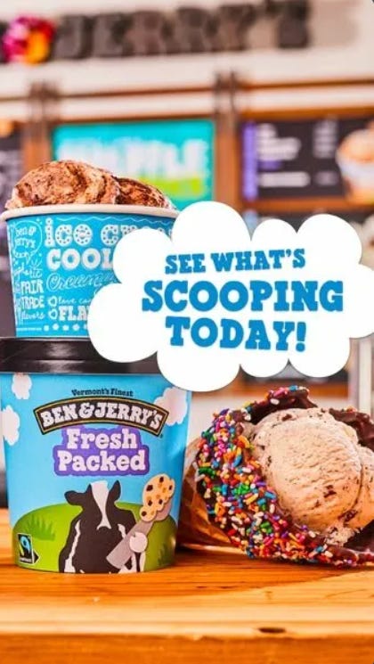 âTodayâ Is Carrying This Entire Ad - One word makes this urgent without being pushy. âSee Whatâs Scooping Todayâ implies rotating flavors, limited availability, something worth checking, without screaming FOMO. It turns a passive scroll into an active reason to click.