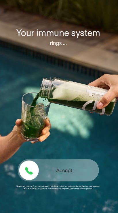This ad hijacks phone UI behavior, turning a health decision into a reflex. âYour immune system ringsâŠâ + the accept button bypasses thinking and taps into a habit loop, youâre wired to respond to incoming calls, not evaluate supplements.